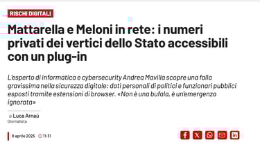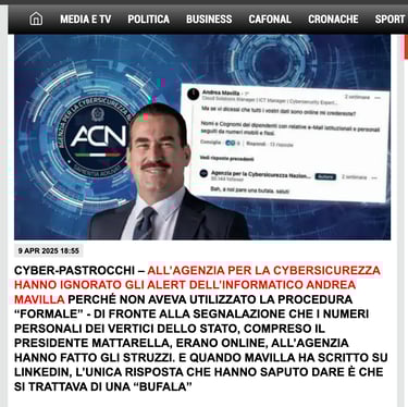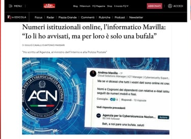 Le attività investigative e le analisi tecniche condotte dal Gruppo - insieme al proprio esperto di riferimento Andrea Mavilla - hanno attirato l’attenzione di numerose testate giornalistiche nazionali e internazionali, portando alla luce vulnerabilità critiche nei sistemi di sicurezza digitale italiani.